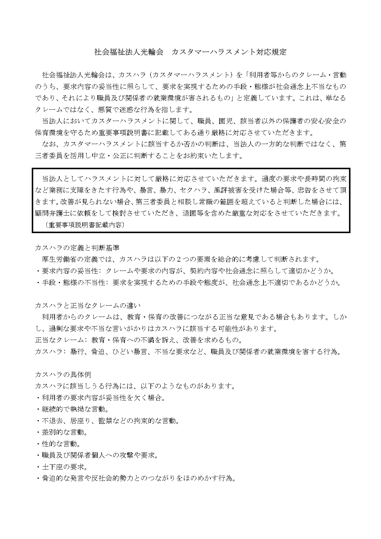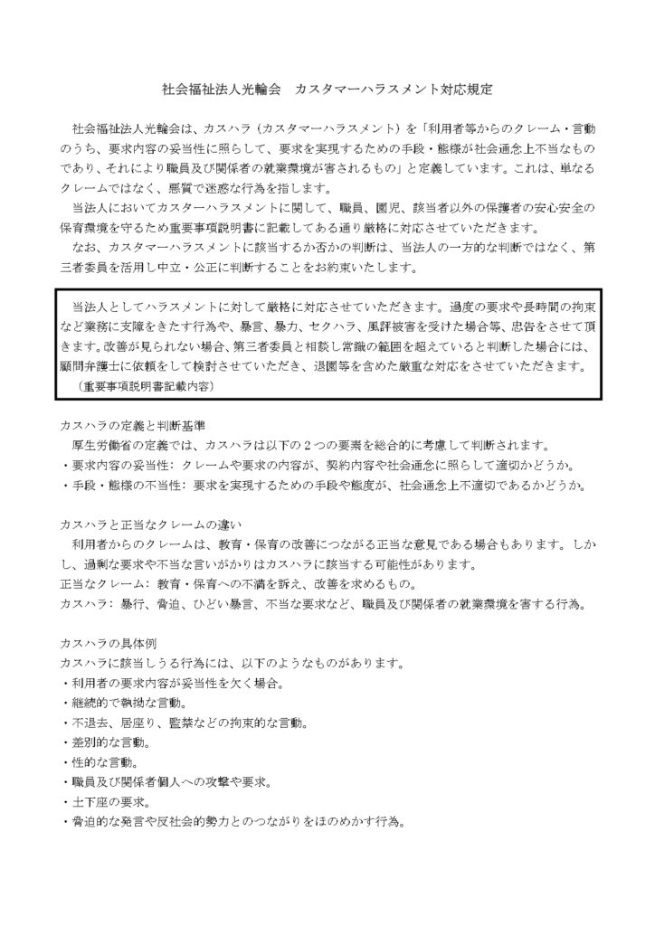 光輪会カスタマーハラスメント対応規定 投稿公開日:2025年11月28日 投稿カテゴリー:光輪会からのお知らせ \ ダウンロードはこちらから / PDFでダウンロードする おすすめ ボランティアに一緒に参加しませんか? 2025年7月1日 令和7年度 就職説明会・採用試験のお知らせ 2025年8月1日